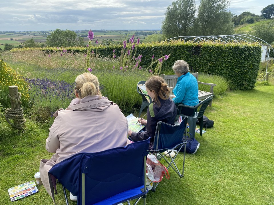 The spectacular panoramic views overlooking rural Rydedale landscape fields beyond hillsides of purple Lavender are spectacular. Surrounding you are tranquil gardens and spacious views. There is something for everyone here in such a relaxed atmosphere soaking up the scene painting alongside like minded artists. A wonderful and rewarding painting day indeed.